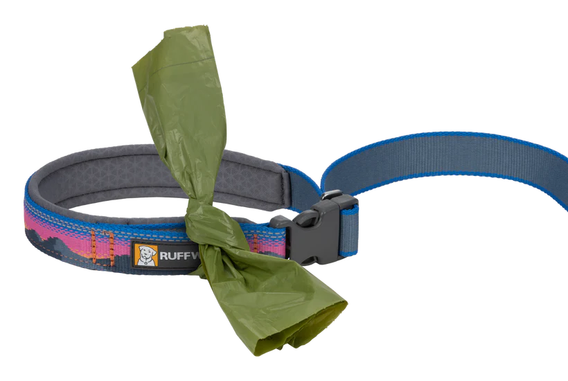 It includes Ruffwear's signature leash features like a padded handle, an accessory loop for pick-up bags or small attachable leash accessories, and strong webbing that holds its color so it can be your favorite leash for years to come. Integrated reflectivity helps boost visibility for dogs and humans getting out in low-light conditions.