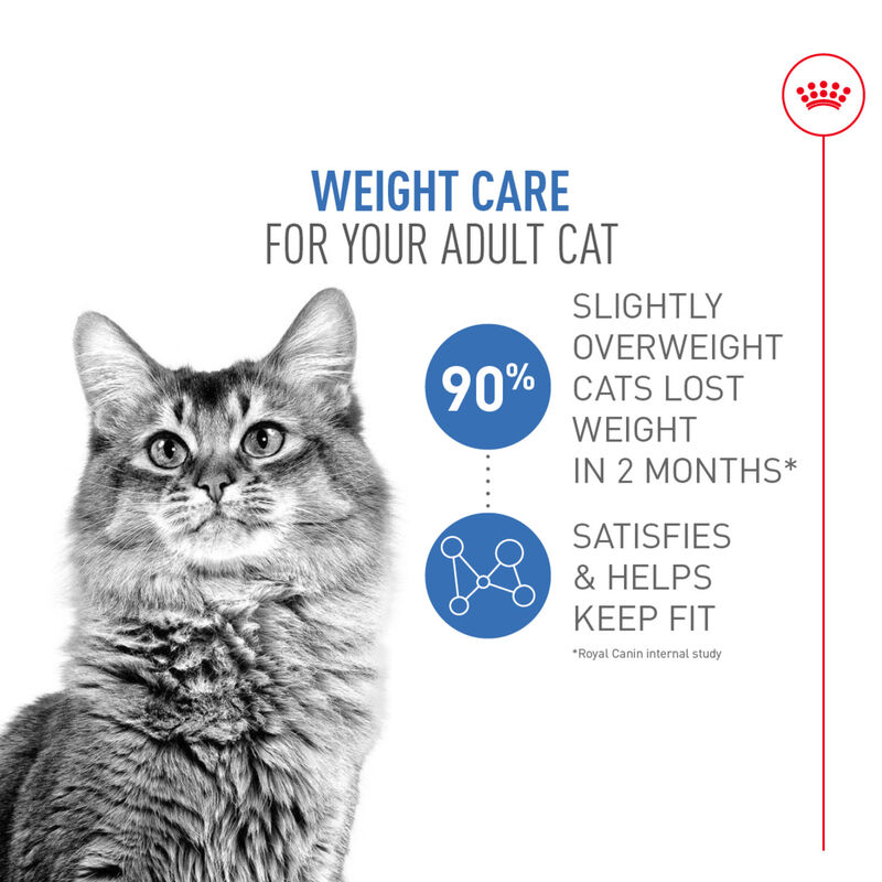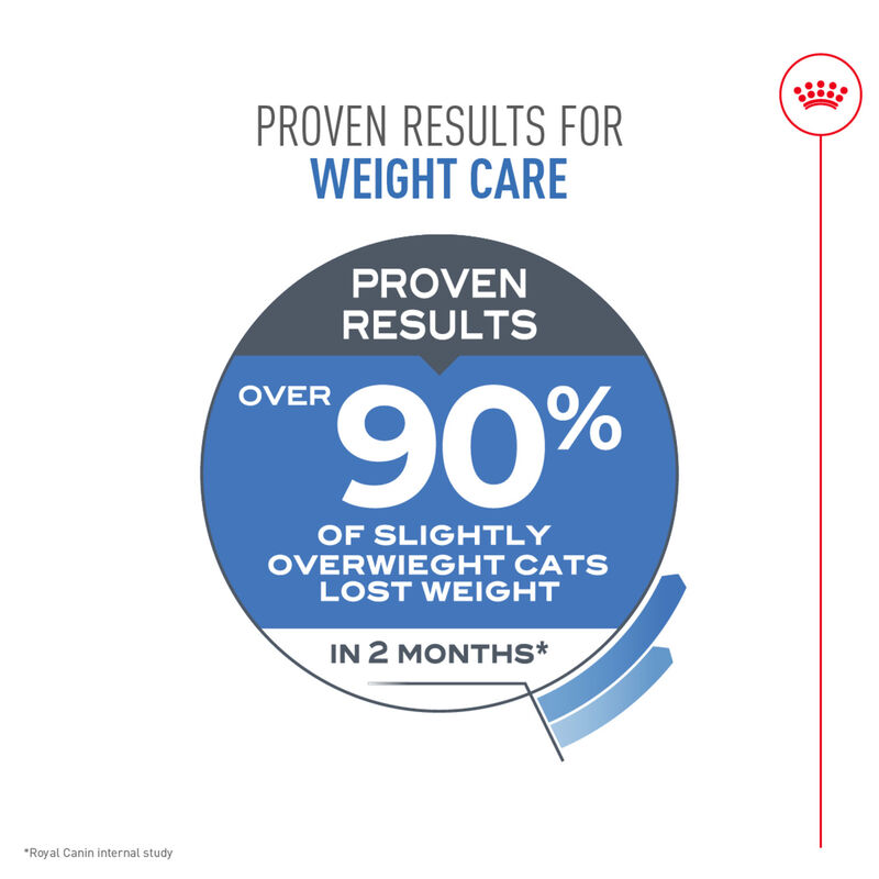 • Over 90% of slightly overweight cats fed ROYAL CANIN® WEIGHT CARE lost weight in 2 months.