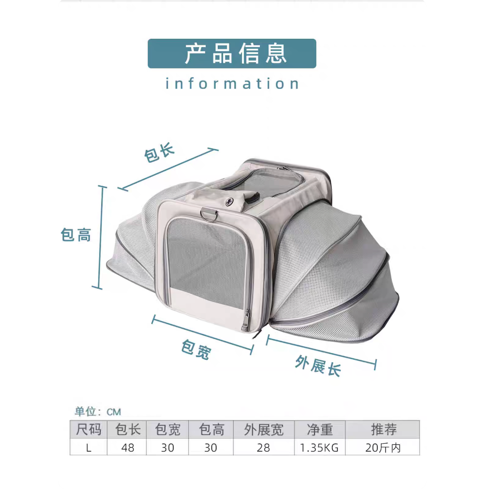 Expandable Cat Travel Carrier w/ Large Capacity